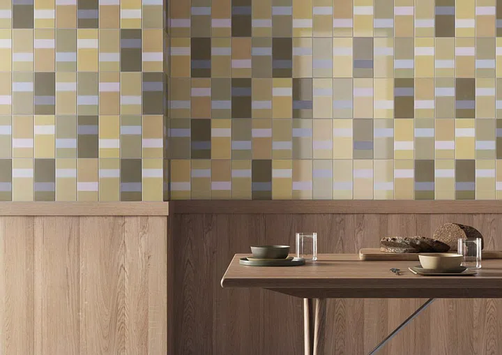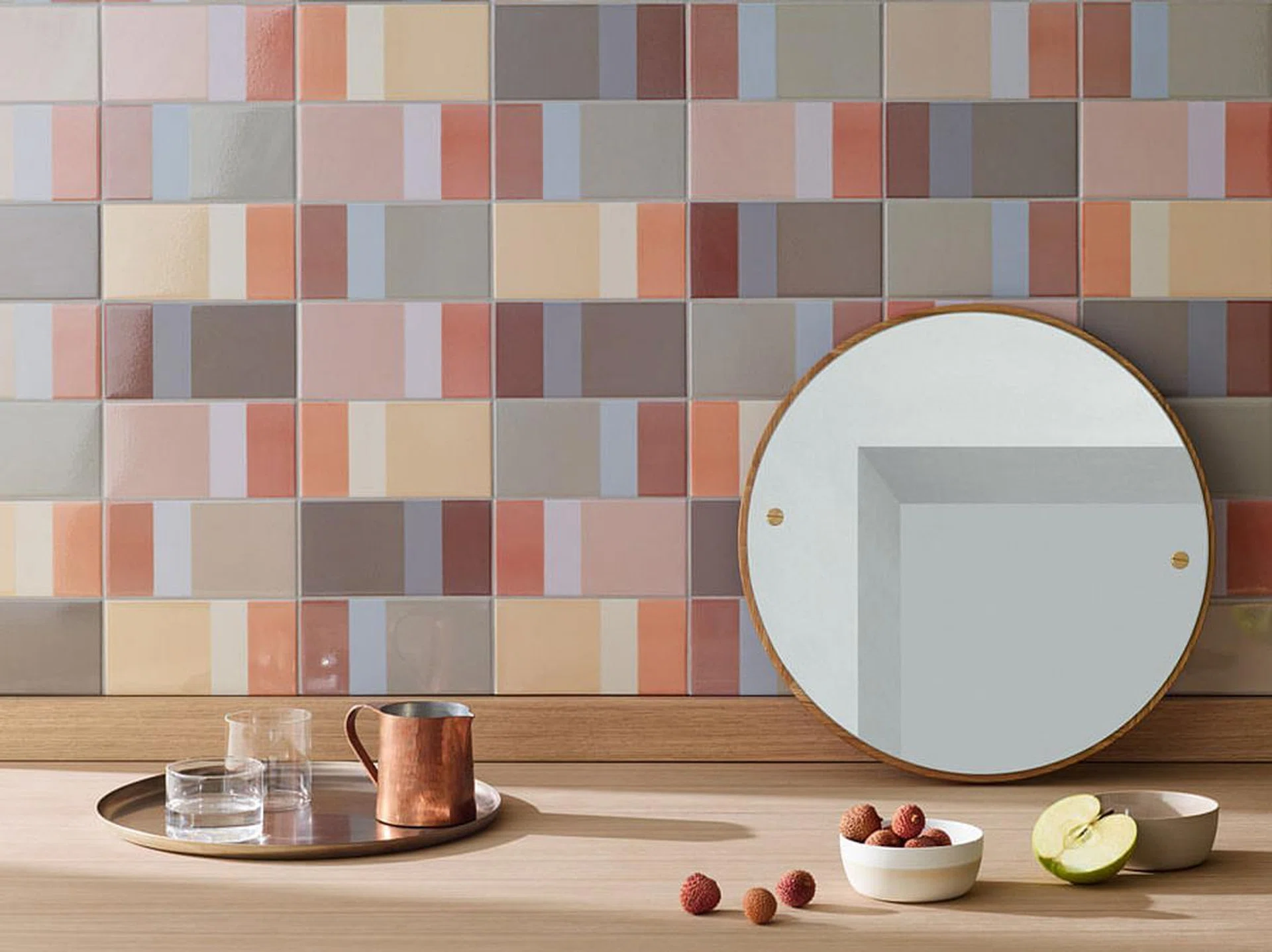 Although it comes in just one rectangular size (9.4cm x 18.7cm), it features a variety of glazed colours applied on seven matte coloured bases, creating dynamic palettes ranging from ultra-modern to retro- inspired.