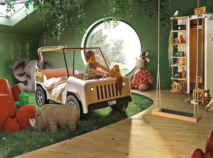 To create a room your kid will be proud to show their friends, you can even include beds shaped like vans, buses, rockets, race cars, boats, or aeroplanes. “Explorer-themed rooms largely depend on the age of your child,” says Jeremy. “Consider gaming, space, pirate, and rock wall themes. The wall is very important for such a theme. You could either get a wall muralist or a wallpaper, or even install a rock wall.”