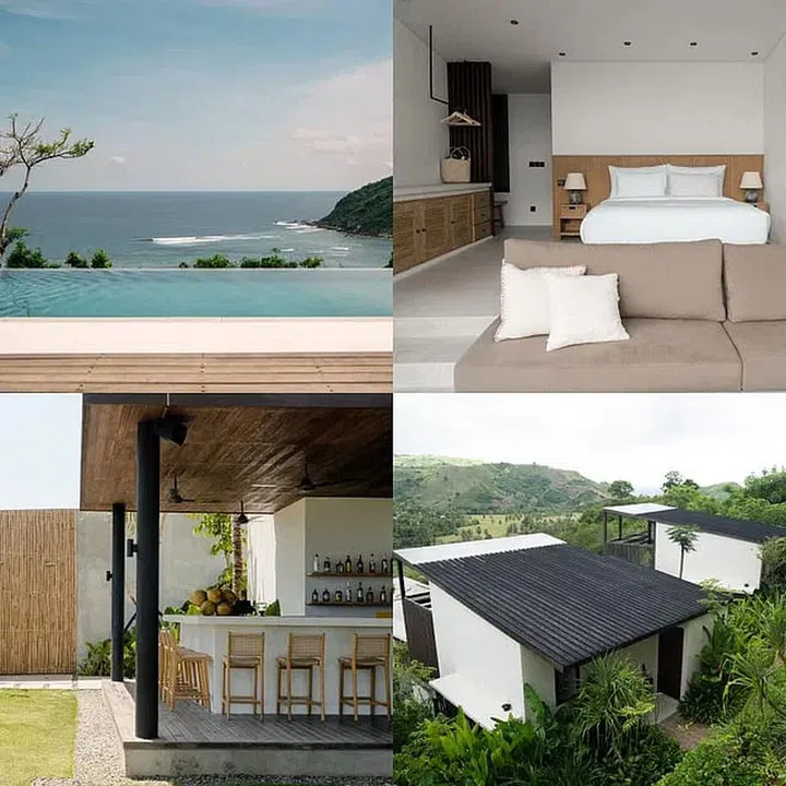 Natural materials like wood, local stone, and concrete abound, with furniture and lighting custom-made in neutral tones. Guests can also enjoy an infinity pool overlooking the bay of Are Guling , along with an in-house restaurant serving Indonesia fusion.