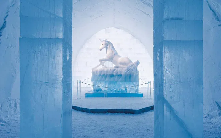 A palace fit for the Ice Queen. Warm up with a round of champagne at the ice bar, meet new friends, visit the ice church, or gallery, then turn in for the night by snuggling up against soft and warm fur throws.
