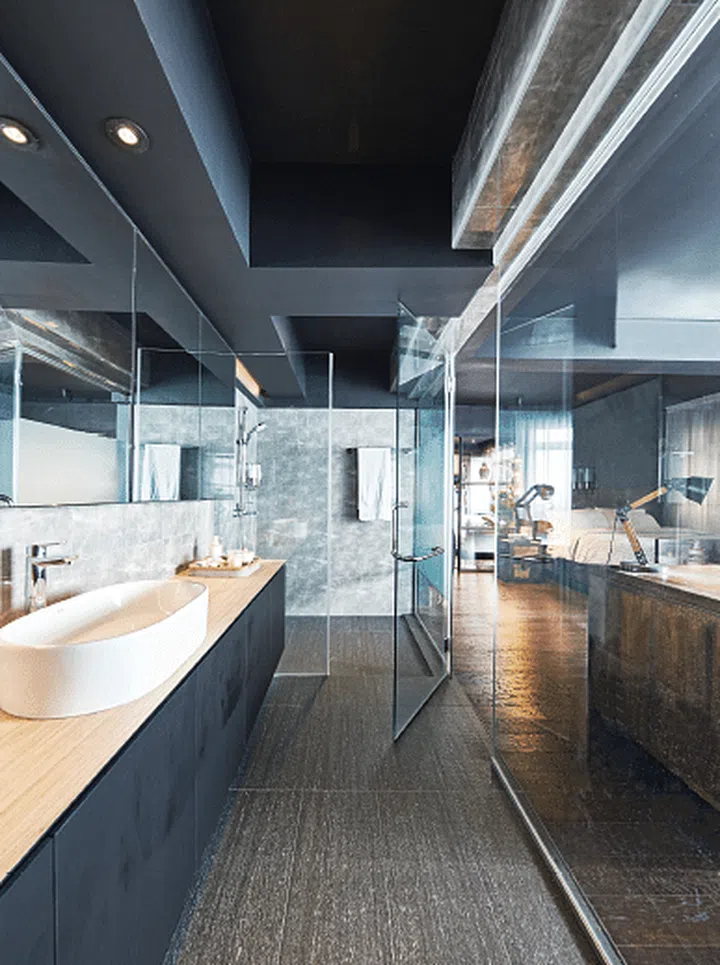 Tasked with creating a spacious open-concept en suite bathroom for the master bedroom, Ivan Lin of Aart Boxx Interior converted the two original bathrooms into one.
