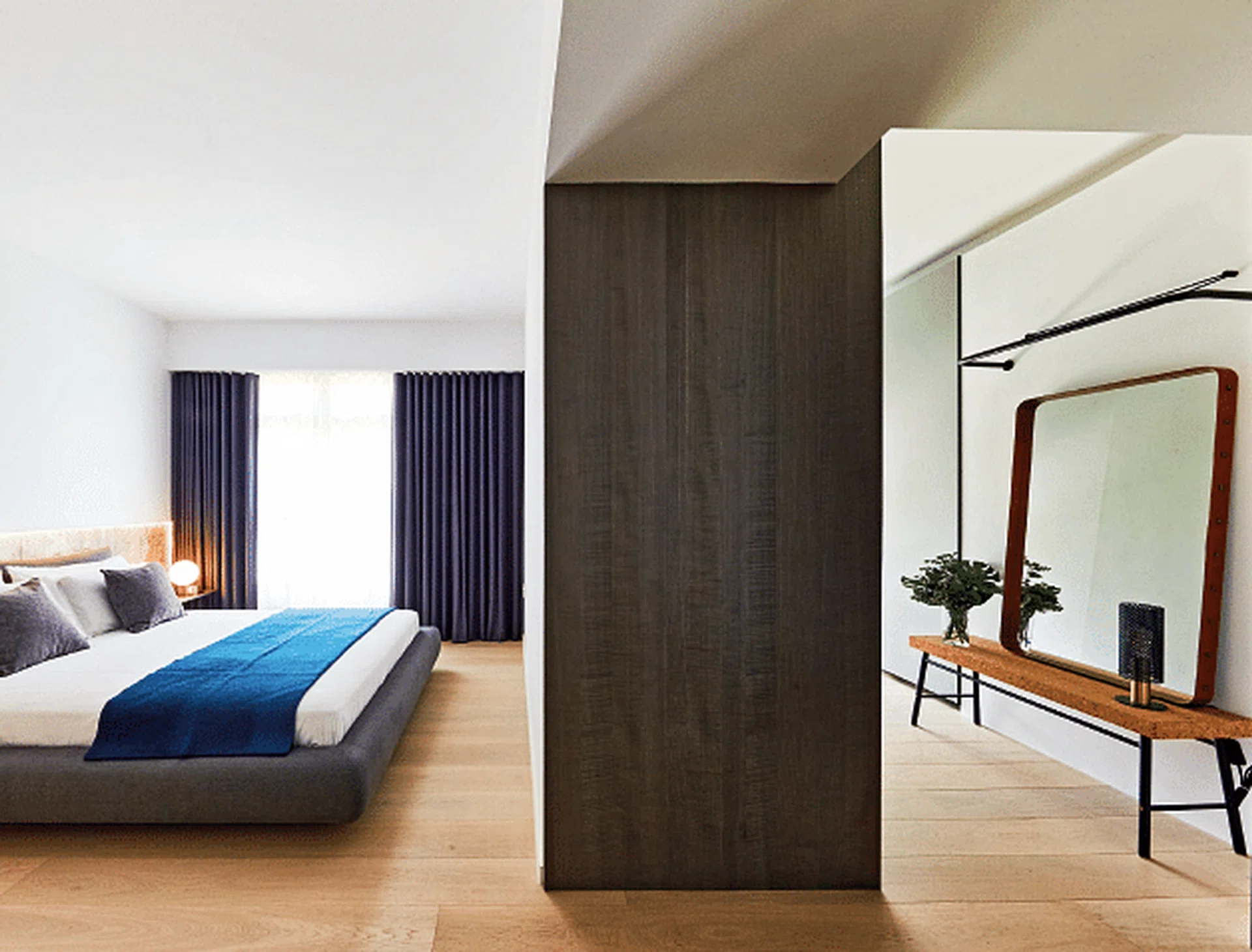 In order to enlarge the master bedroom of her matrimonial home, homeowner and architect Vanessa Ong of April Atelier used some of the floor area of an adjacent bedroom to fulfil her dream of a wardrobe-cum-dressing area.