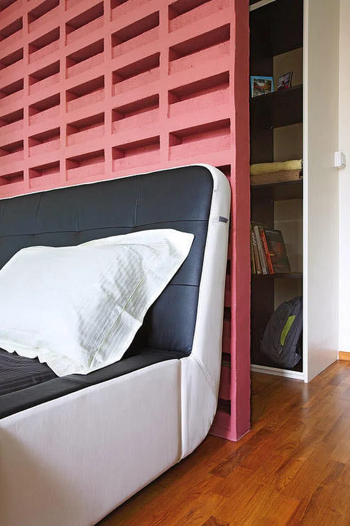 Faced with a ridiculously small bedroom, Three-D Conceptwerkz turned the hallway divider into a headboard and a wardrobe. Crafted the right way, the storage unit also becomes a decorative piece.