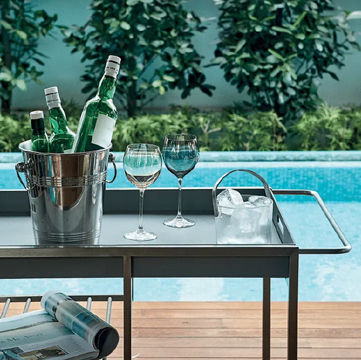 What we did: Chose brightly coloured props that would pop against a sea of greens and blues. We also included an element of water – whether it’s a pool, or a drink.