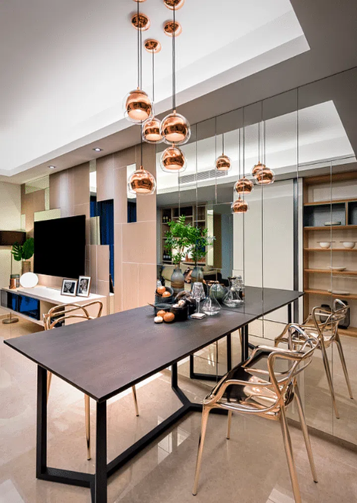 Mirrors are the go-to trick for any interior designer looking to create depth and space. Nina Beale of Bungalow 55 likes to arrange three long mirrors along the back wall in a dining room to make it feel grander. It also creates a point of interest on an otherwise blank canvas and is a fresh alternative to a piece of art.