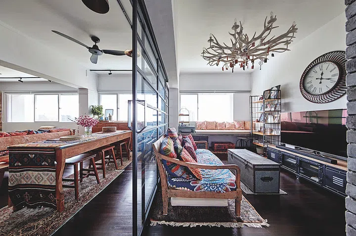 Heavy materials and fabrics will immediately weigh a room down, so look at alternatives for some of the larger items of furniture, and play around with soft furnishings and accessories. “Add lashings of reflective materials such as glass and acrylic to lighten the mood,” suggests Jeremy Tay of Prestige Global Design. Trading a solid teak table for a more whimsical, glass-topped one will immediately give the illusion of a larger space, as would replacing heavy drapes with sheers and swopping shaggy rugs for low-pile ones.