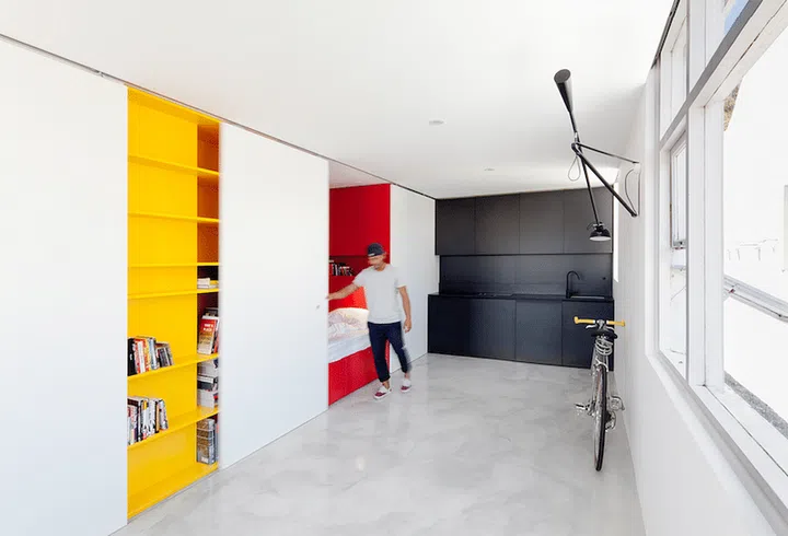 While bedroom and bathroom doors are mandatory, consider removing those that aren’t, and leave a statement door frame instead. Alternatively, sliding doors do the job just as well, and are completely unobtrusive. “Sliding doors built into walls leave you with more wall space,” says Nina Tolstrup of Danish small-scale design experts Studiomama.