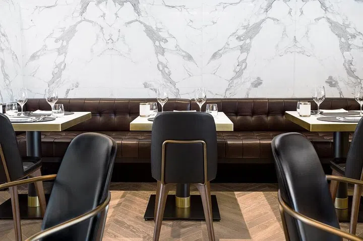 One large wall in the living area is clocked in wood, creating a sense of intimacy in this well-styled space. This space features accessories such as the tinted Niche Modern hand-blown glass pendant lamps, as well as cushions the owner brought back from London.