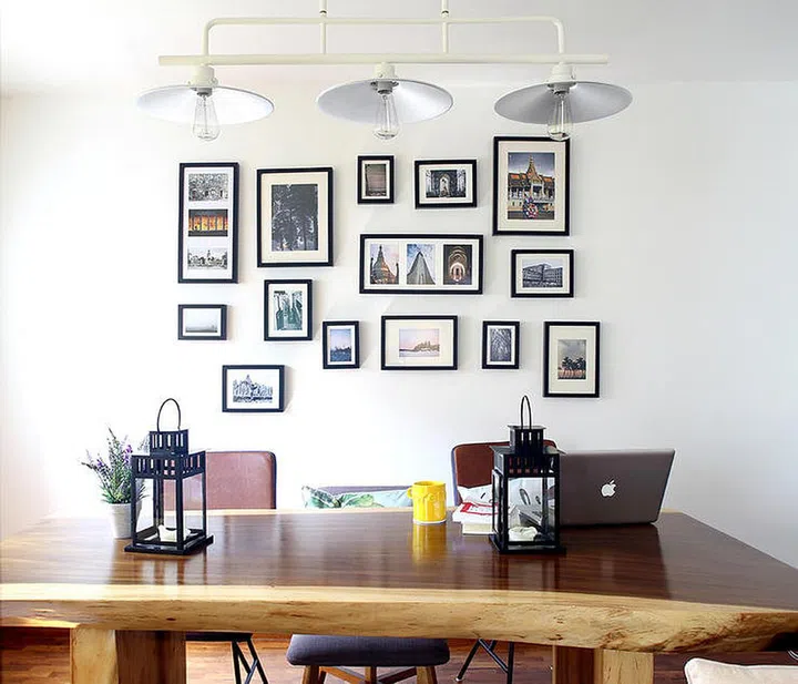 7. Fill a wall with a cluster of photo frames with family mementoes. It will instantly add warmth and personality to your home. (Interior design by The Scientist Pte Ltd)