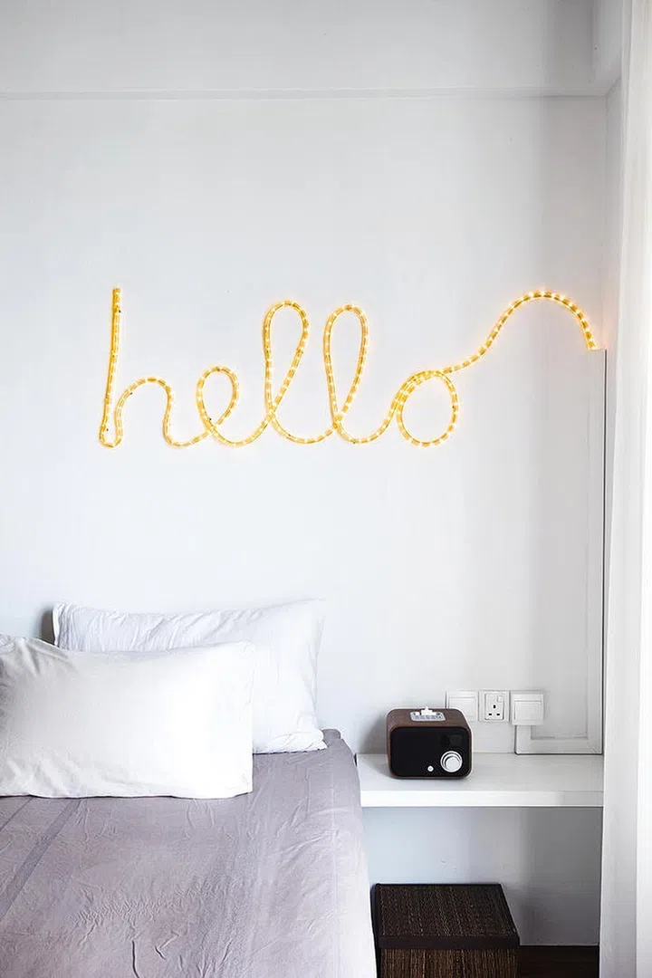 1. Create a word, phrase or even a shape with a string of LED lights. (Interior design by EHKA Studio)