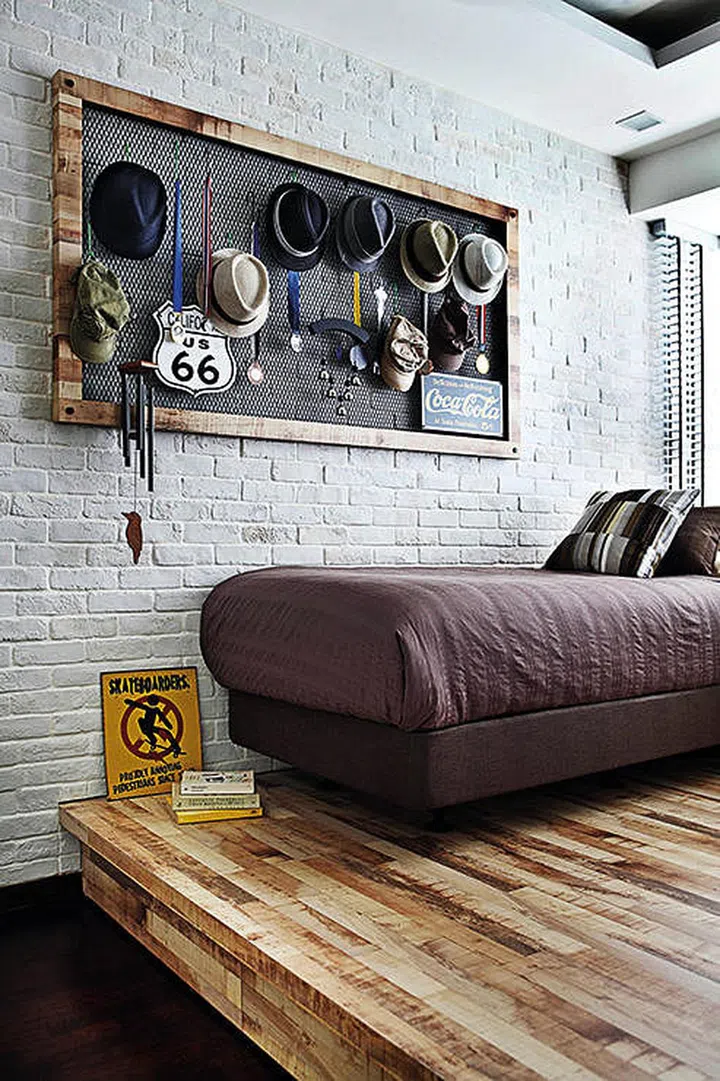 2. Hang up accessories and trinkets on a frame to create an interactive art piece for your room. (Interior design by DistinctIdentity)