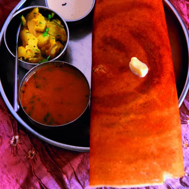 The pancake-like dish is made from a mixture of rice, lentils, fenugreek, peas, and chickpeas. It's often paired with several chutneys, gravy, and potato curry. If you have a sweet tooth, you can enjoy your thosai with sugar as well.