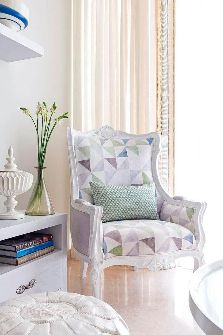 What they did: An unrestrained mix of print and pattern jazzes up the otherwise neutral interiors of this apartment. We spotted: patterned material finishes on the soft furnishings, such as the ikat-print dining chairs, and furniture in timeless colours like white, black, and bronze.
