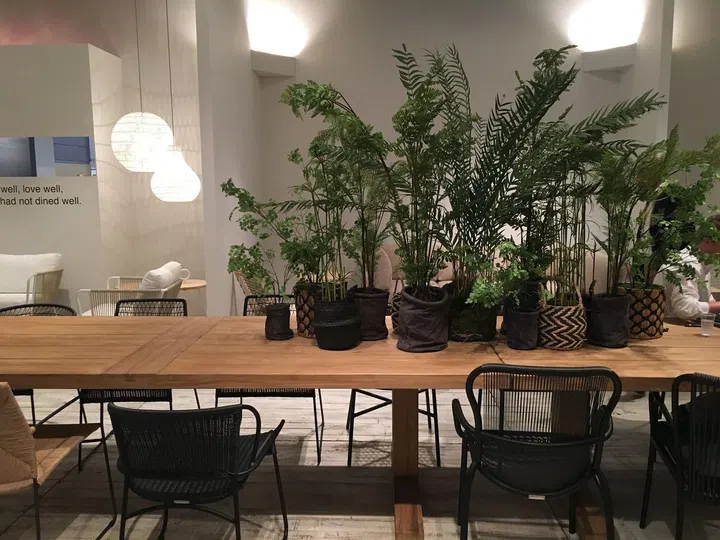 5) Don't have a floral centerpiece for your dining table? Make a bold statement with an assortment of lush potted plants instead — definitely an interesting change.