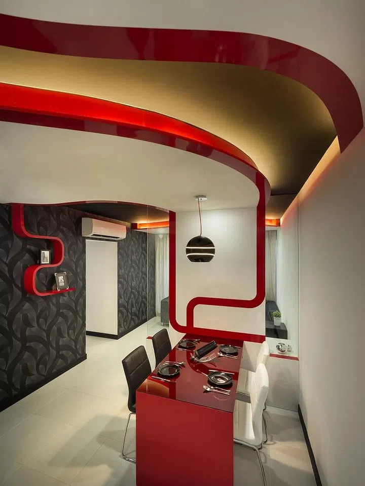 If you don't want to have unsightly exposed electrical cables and ducting running across your ceiling and spoiling your home's interior design, consider going for a false ceiling. They're not only good for concealing everything, they can add to your home a decorative element without taking up precious floor area!