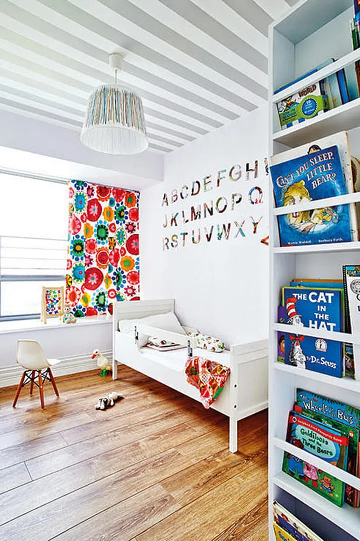 If you want to steer away from the typical black-and-white stripes, try using lighter shades of colours like blue, green or even neutrals. It'll help to create a bright and airy feel!