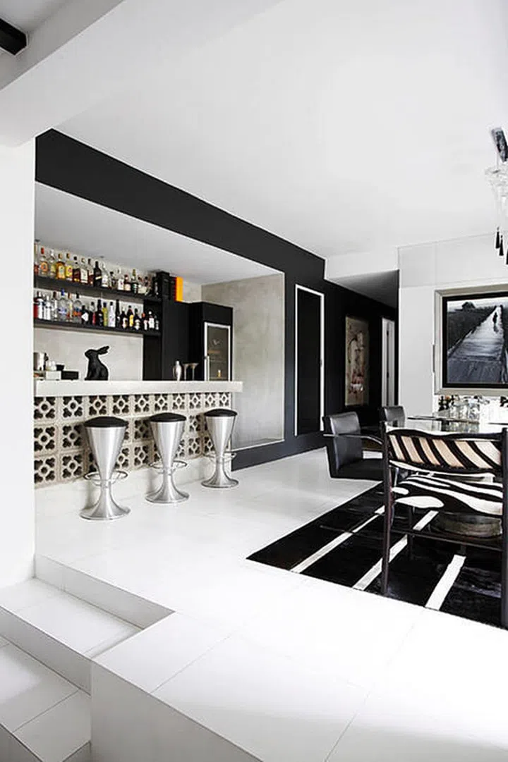 If you want to achieve a simple yet dramatic effect, consider using striking black-and-white stripes for your feature wall. But remember to leave the rest plain for some breathing space!