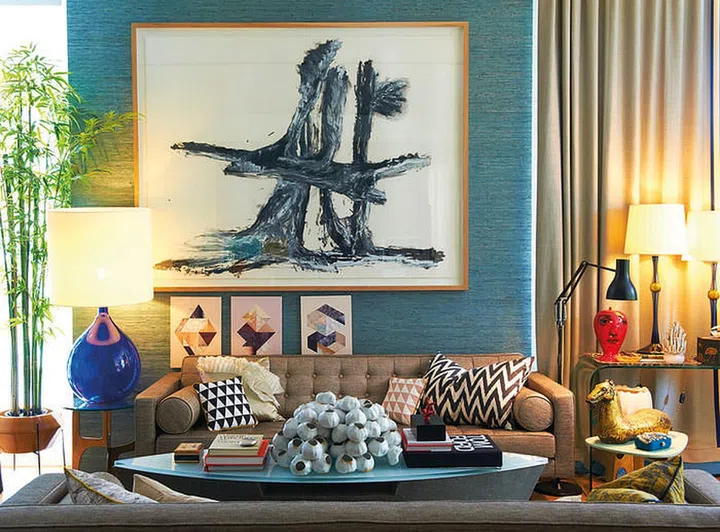 4. You can add striking throw pillows on your plain-coloured sofa, or add a vase of flowers to your coffee table to create varying heights.
