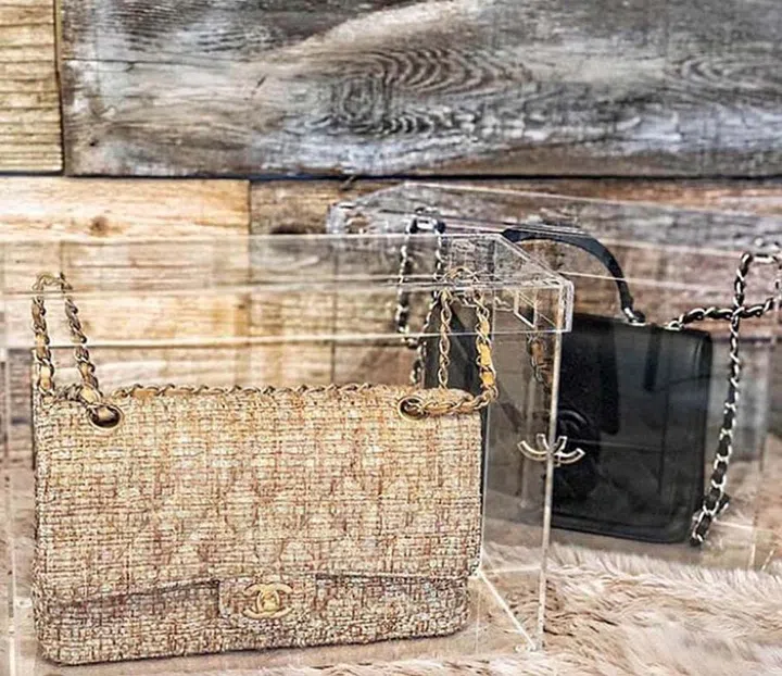 Acrylic cases offer sturdier protection for precious designer bags than dust bags, and you'll get to have your purses on display, too.