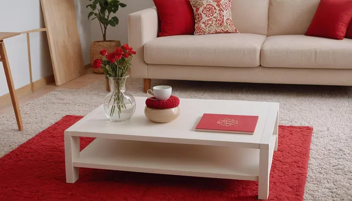 Instead of adding more red things, add a Red Glow. Use a smart bulb (like Philips Hue) in a corner floor lamp and set it to a very soft, dim “Sunset Orange” or “Amber-Red.” This creates a “cocktail lounge” atmosphere that feels celebratory and intimate. It turns white walls into a soft, blushed canvas without the need for a single nail in the wall.