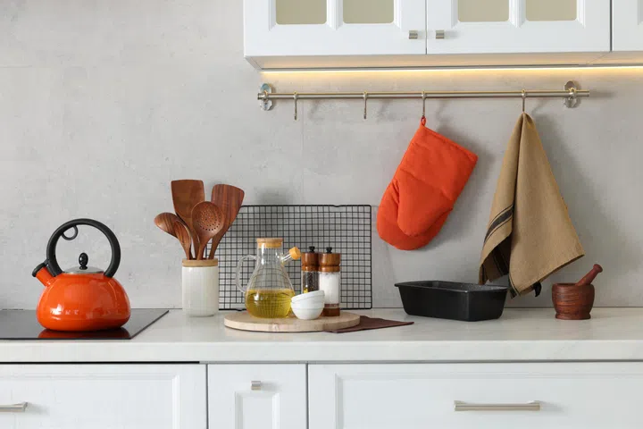 Pair your subtle reds with Brushed Gold or Brass. The metallic sheen acts as a visual “coolant” for the red, turning “hot” decor into something that looks expensive and disciplined. Think brass coasters or a gold-rimmed tray to hold your oranges.
