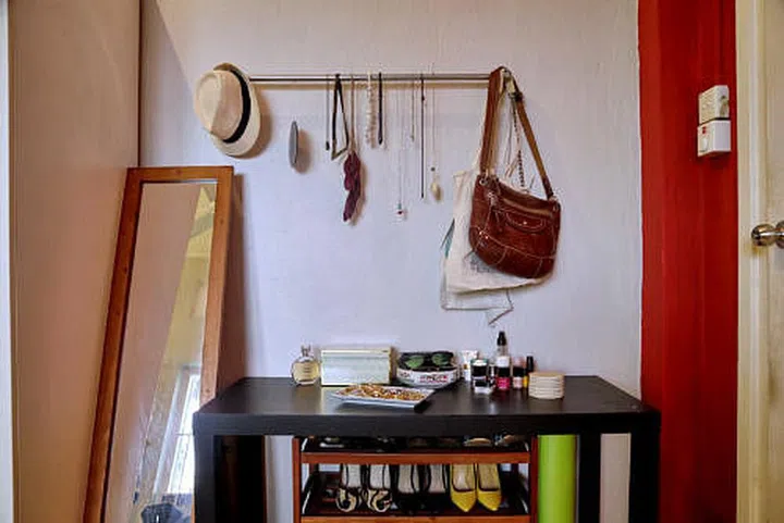 Vanity Table: "Keep only your essentials on the table. I also keep my shoes in the same area beneath the table to help me accessorise as well."