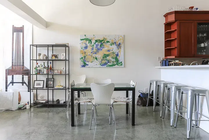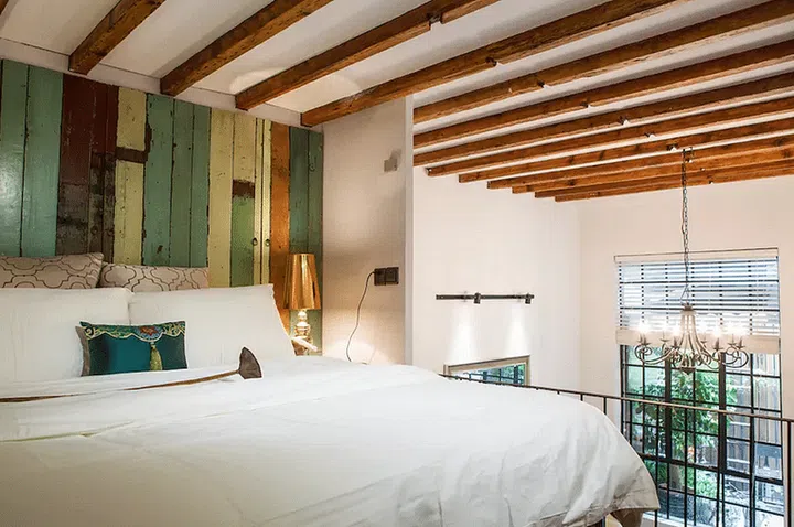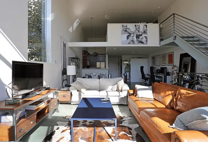 This modern loft in United States is decked in art, and seems like a cool bachelor pad! It also comes with a private porch where there is a fire pit and grill.