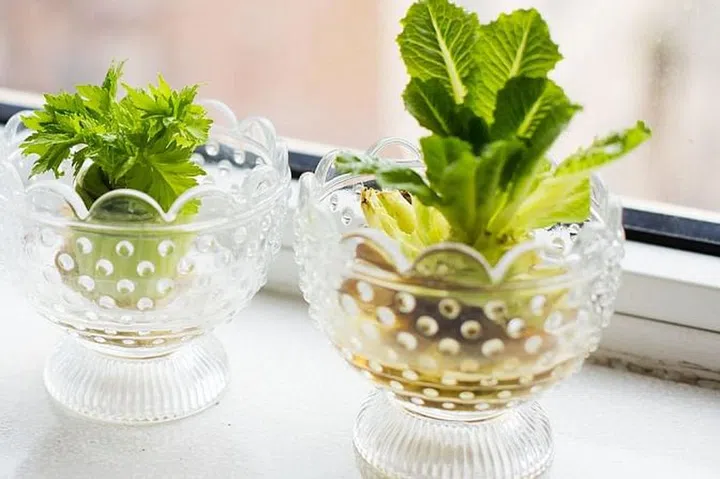 Place the root end of the celery in a container of water and leave it where there’s plenty of sun. Once leaves begin to grow in the centre, replant it in soil for newly grown, fresh stalks of celery. You can use the leaves, too, as garnish.