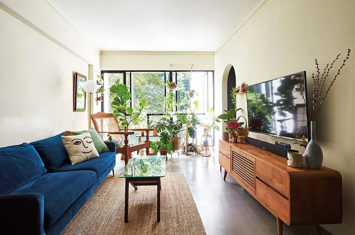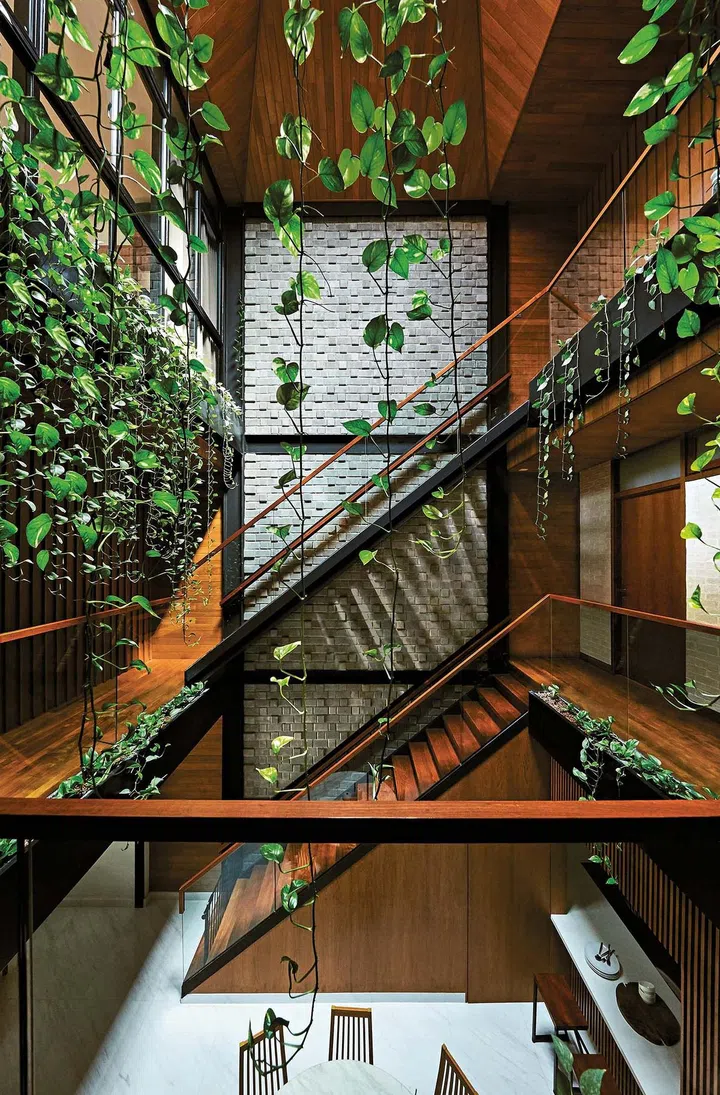 Sunshine and fresh air are the two most basic needs of all living things. So turn off the aircon and open your window. Ensure that you clean your windows regularly and choose blinds and curtains that are unobstructive and easy to control. This open courtyard populated by creepers in a home designed by Produce is an excellent biophilic design strategy.