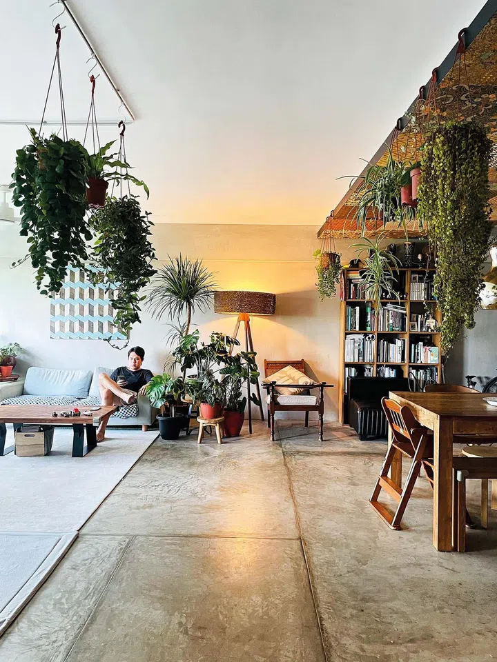 Plants, ample sunlight, natural materials, textures and connection to the outside world make for a biophilic home seen in this design by Monocot Studio.