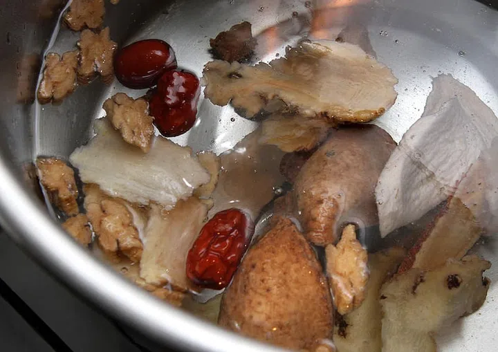 3. Add the danggui, huai shan, yuzhu, dangshen, orange peel and red dates to the pot and boil for 20 minutes.