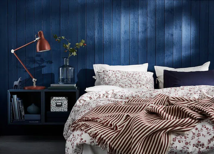 “It is ideal for the living room and bedroom because of its elegant presentation. This darker shade of blue is a strong colour, so to make it feel less intimidating pair it with other neutral tones.”