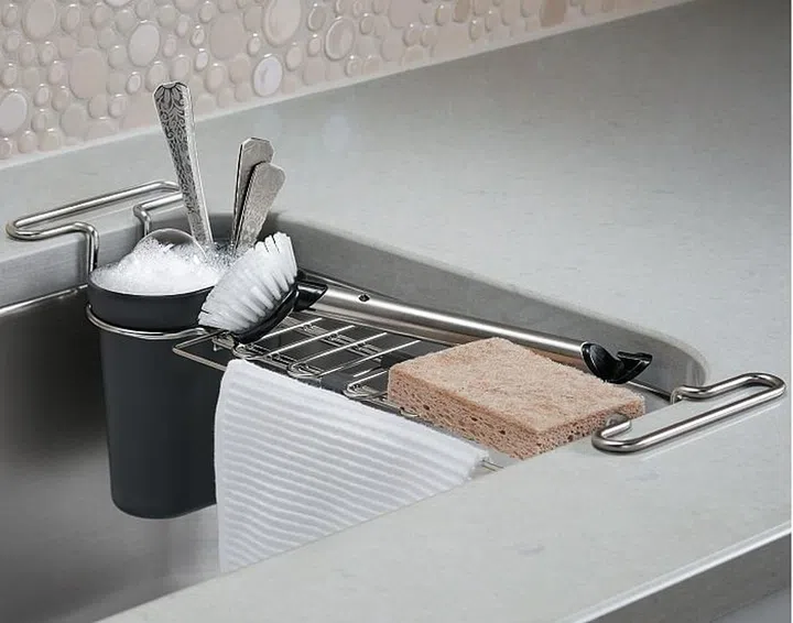 If you have a roomy sink, don't let it go to waste. Keep cleaning items organised and at hand with the Kohler kitchen sink utlity rack that expands up to three inches to fit most sinks. It can also double up as a drying rack for coffee mugs.