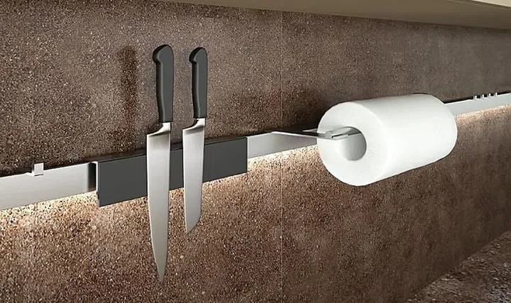 ORGANISATION TIP #9: A wall-mounted strip keeps your countertop clear