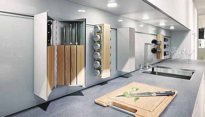 When organising and sorting out pantry items or cooking tools, look to something like the SieMatic MultiMatic by W. Atelier. This interior accessories system combines a host of practical features, from pullout drawers to trays and racks that can be mounted on cabinet doors to even save more space.