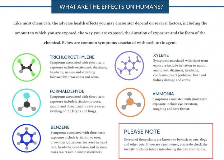 NASA teamed up with the Associated Contractors of America (ALCA) to study how plants affect air quality and found out that some plants, in particular, actually helped to reduce various toxic elements in the air. The study listed the various harmful chemicals that are commonly found in the air: Trichloroethylene, Formaldehyde, Benzene, Xylene and Ammonia as well as the ways these toxicants are released into our air.