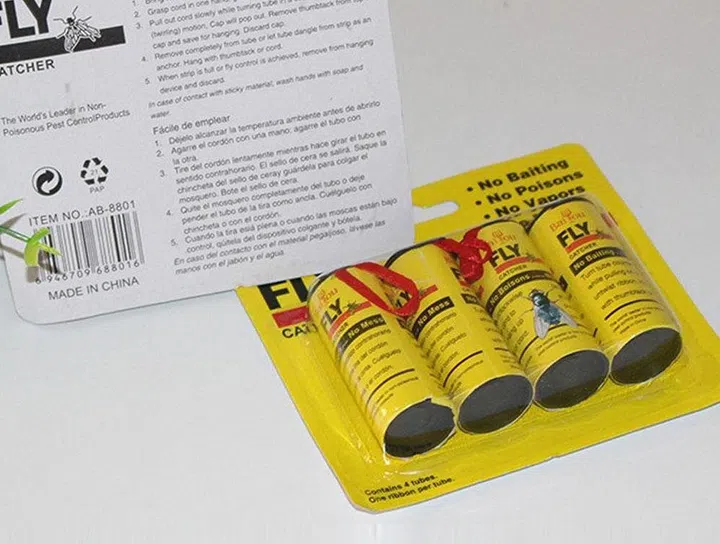 You can also use sticky tape for house flies and fruit flies. These are non-toxic and safe to use around children and pets, such as these Fly Catcher Strips ($2.51).
