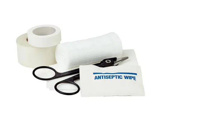 A first aid kit fully stocked with antiseptic wipes will allow you to be prepared to effectively treat and disinfect any wounds or thoroughly clean your hands prior to providing medical assistance. It is also important to sterilise or disinfect any tools you use, as well as your affected area, before dressing wounds. You can use wipes or an antiseptic spray to spritz directly onto the areas.