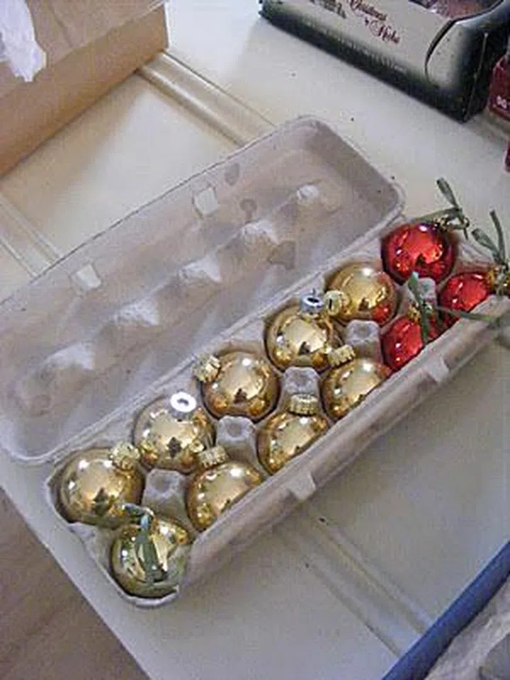 Empty egg cartons are perfect holders for storing your smaller decorative ornaments like baubles. Don't forget to label each carton so you know what's what.