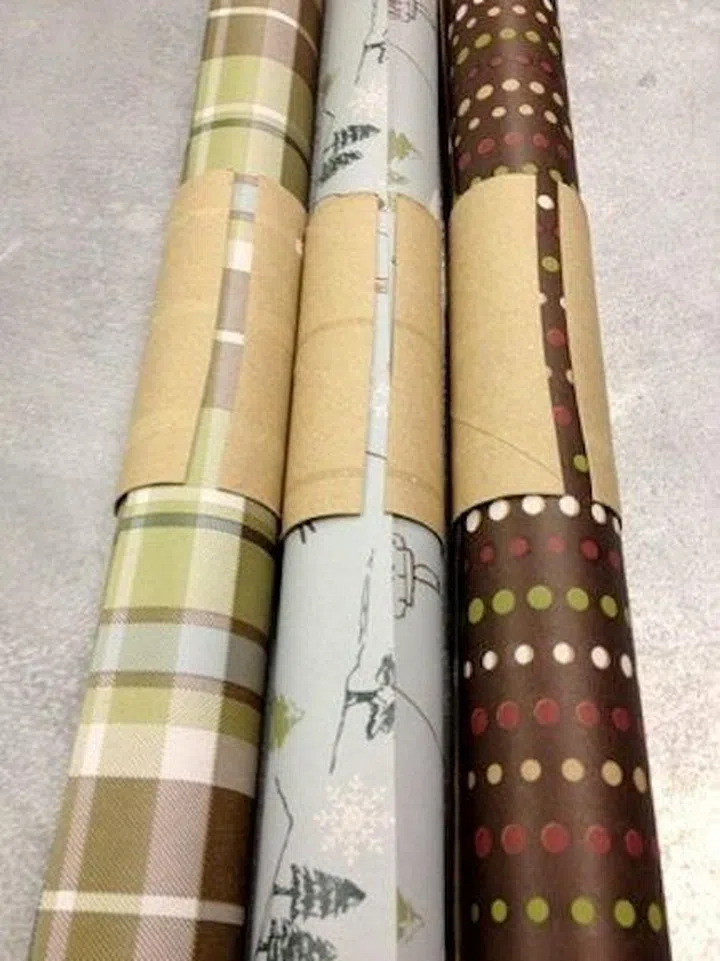 28. Secure wrapping paper with toilet rolls