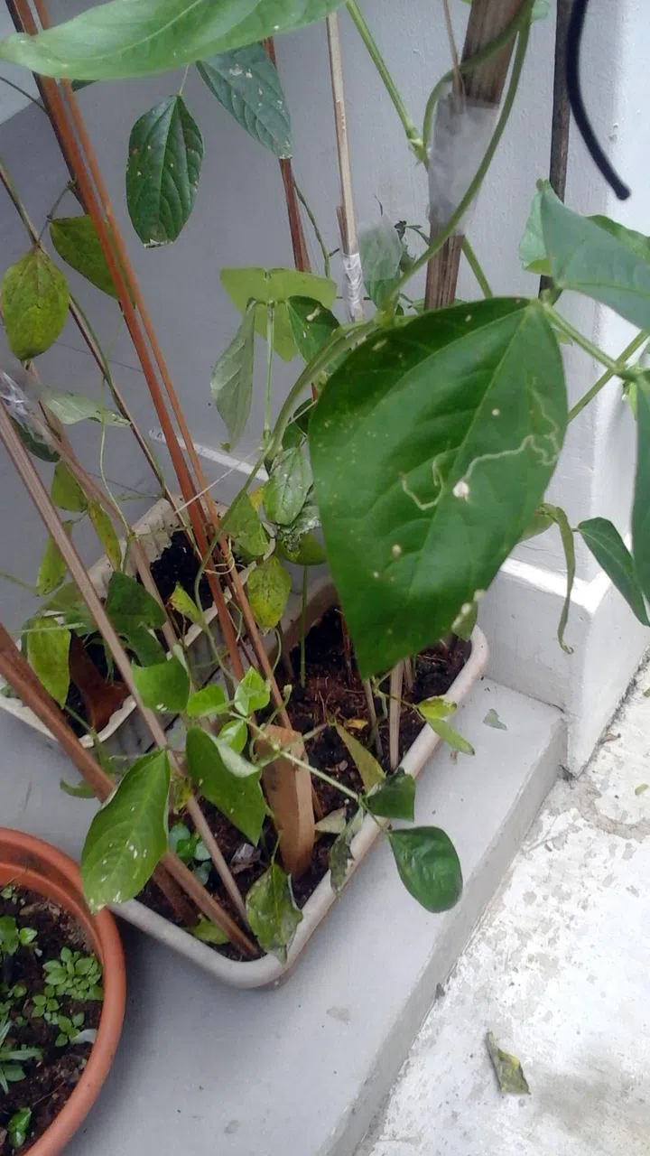 3) What are the white lines on the leaves of my long bean plant?