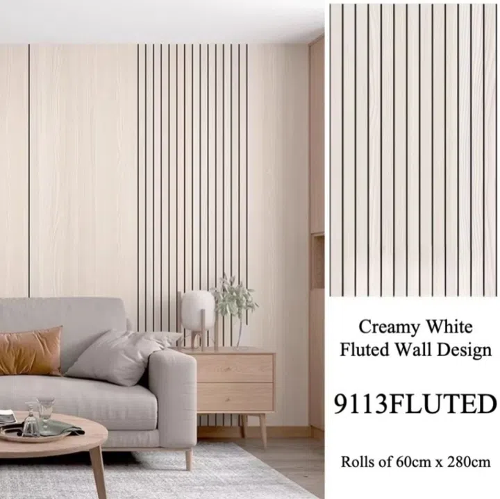 Find wood-like fluted panel self-adhesive wallpaper from $32.90 for a roll of 60cm x 280cm on Shopee (ForeverGreen).