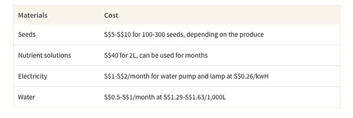 Once you have a working hydroponic kit, it's very affordable to operate and grow your own produce at the comfort of your home. The ongoing costs of running your own farm should be about $5 or less per month, which accounts for seeds, nutrients, electricity and water for the 30-45 days it requires to grow most vegetables.