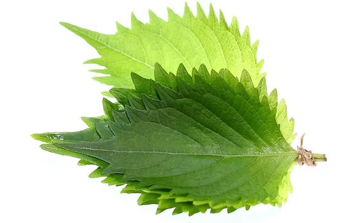 You can't go to a Japanese restaurant and miss this pretty herb — it's often the leaf that lines plates holding sashimi (raw fish) or sushi. Part of the mint family, shiso leaves have a unique taste, somewhat like a cross between mint and celery. It's used mostly as a condiment or garnish in Japanese cuisine.