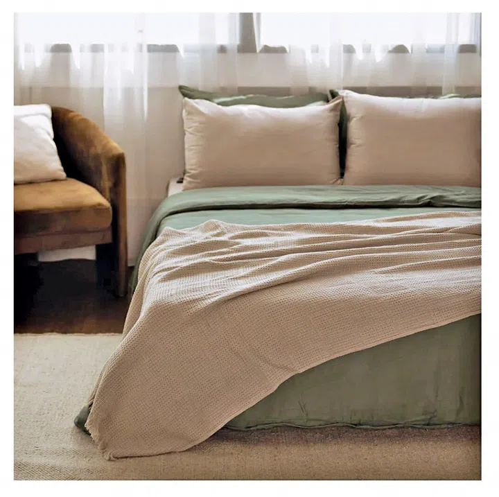 In soft furnishings, natural fibres bring everyday luxury without chemical finishes or microplastics. Local labels such as Sunday Bedding and SOJAO offer 100% GOTS-certified organic cotton, while Weavve Home provides OEKO-TEX certified Tencel and cotton sateen sets.