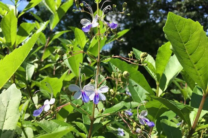 The Blue Butterfly Bush, which is known botanically as Rotheca myricoides "Ugandense", is a shrub.