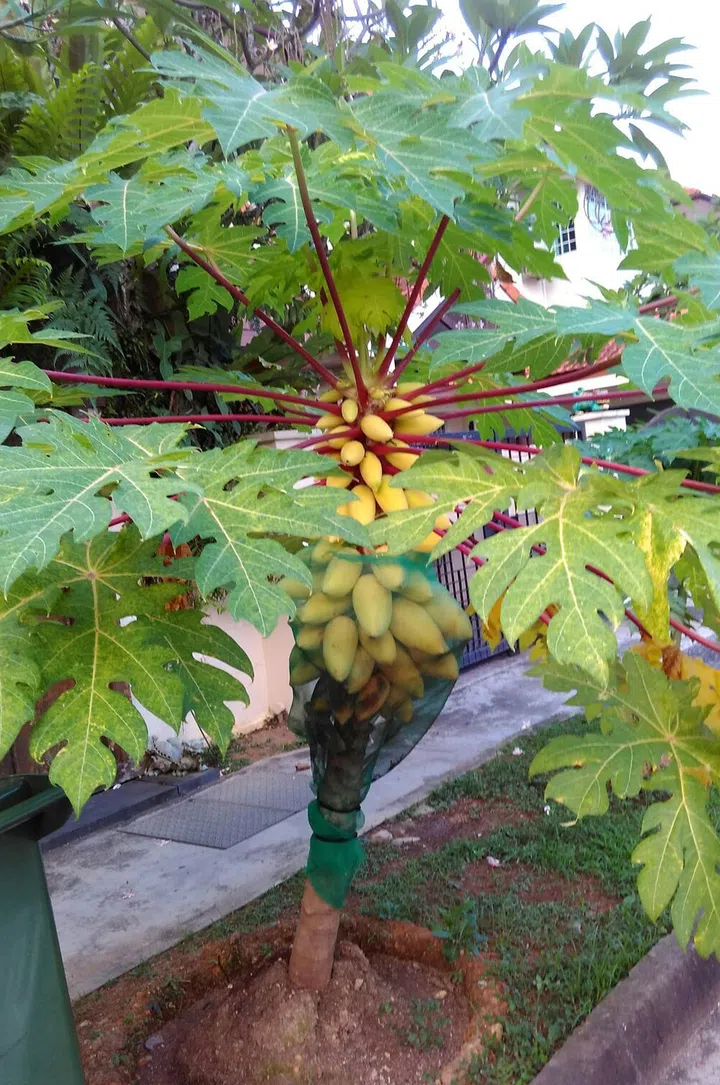 Protect the ripening fruit from animals by wrapping them with a wire mesh. The Carica papaya plant can also be grown in a garden for its ornamental value.