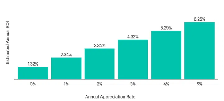 Estimated annual returns from HDB investments based on annual appreciation