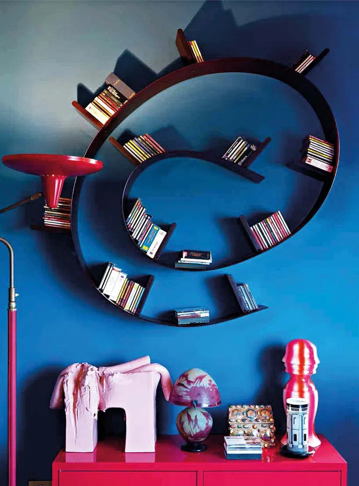 Their shape matters as well. Apart from the classic horizontal shelves, there are slanted and even statement ones like Kartell’s Bookworm. Its visually-arresting spiral shape makes it the centre of attention in a room.