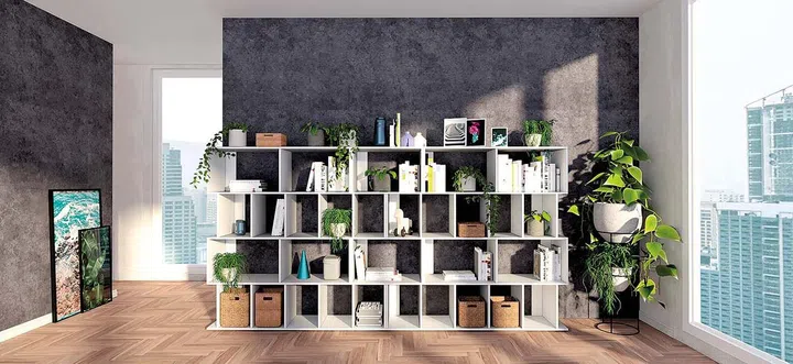 These days, shelf colours run from neon hues to light oak. Since they’re usually placed at mid-level or high on a wall, shelves occupy essential visual space and alter a room’s entire look. A safe bet is to match their shade to your walls. Alternatively, high contrast black shelves against white are a stylish graphic look.